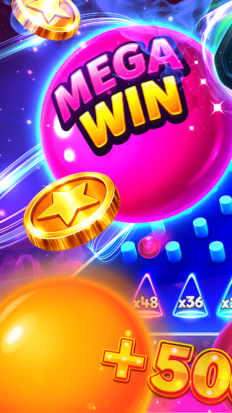 Release balls from the top of the board and watch them bounce through the pegs as they move downward. Each ball eventually lands in one of the zones at the bottom of the screen. Every zone has its own multiplier, such as 1x, 2x, and others.